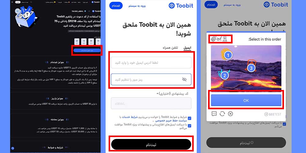 در ادامه به آموزش ثبت نام هم با گوشی و هم با لپ تاپ خواهیم پرداخت. در ادامه نحوه کار با اپلیکیشن Toobit را نیز آموزش خواهیم داد.